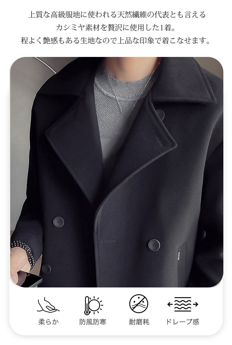 カシミヤ混ピーコート